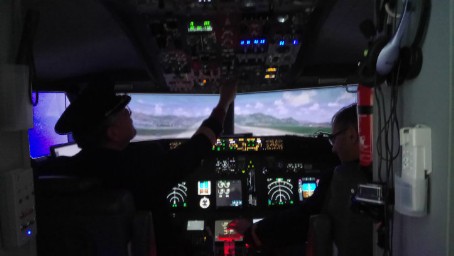 Chez Gilles avec son simulateur, décollage depuis Nices LFMN sur Boeing 737-800.